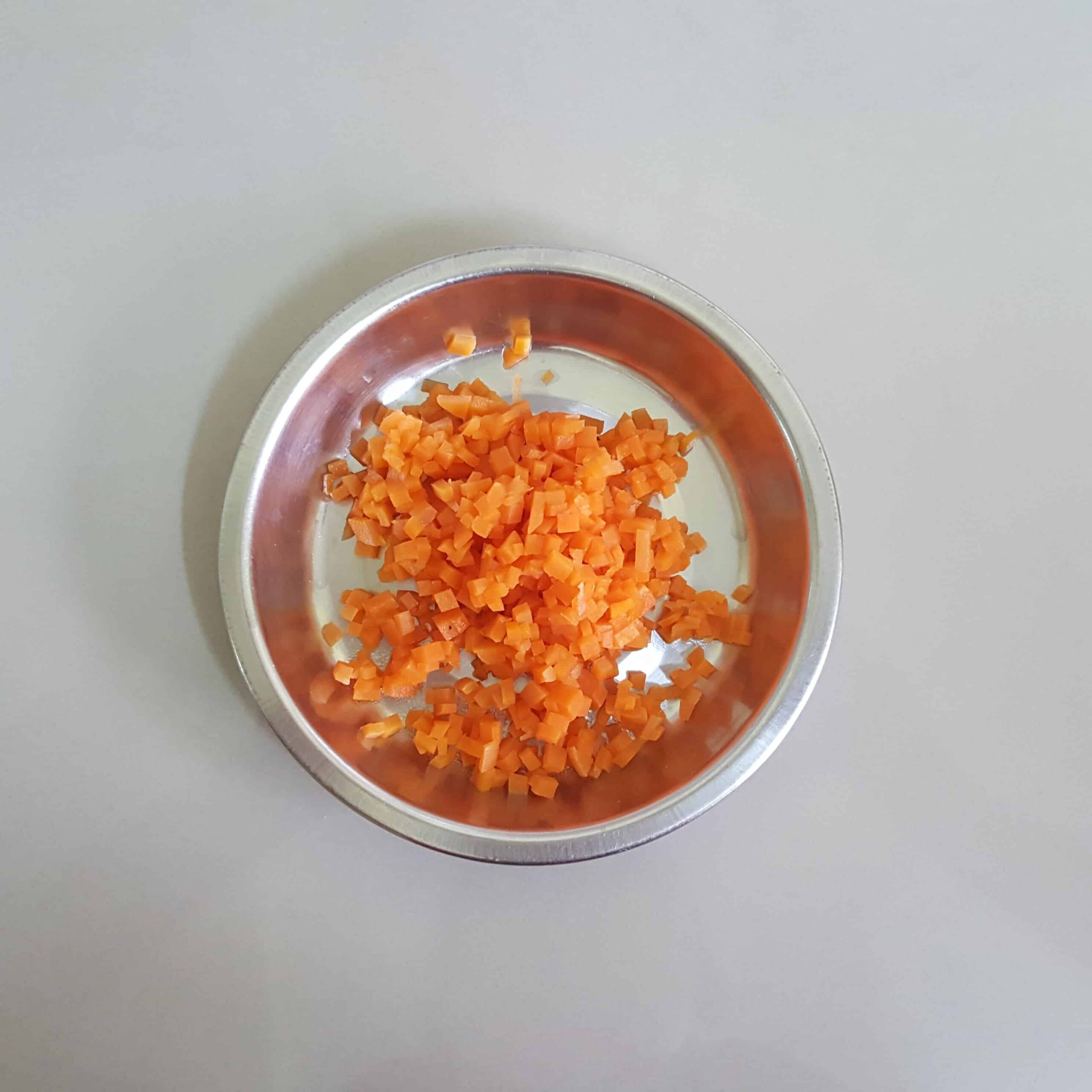- Carrot – 2/3 medium size or 1/3 cup, chopped, boiled